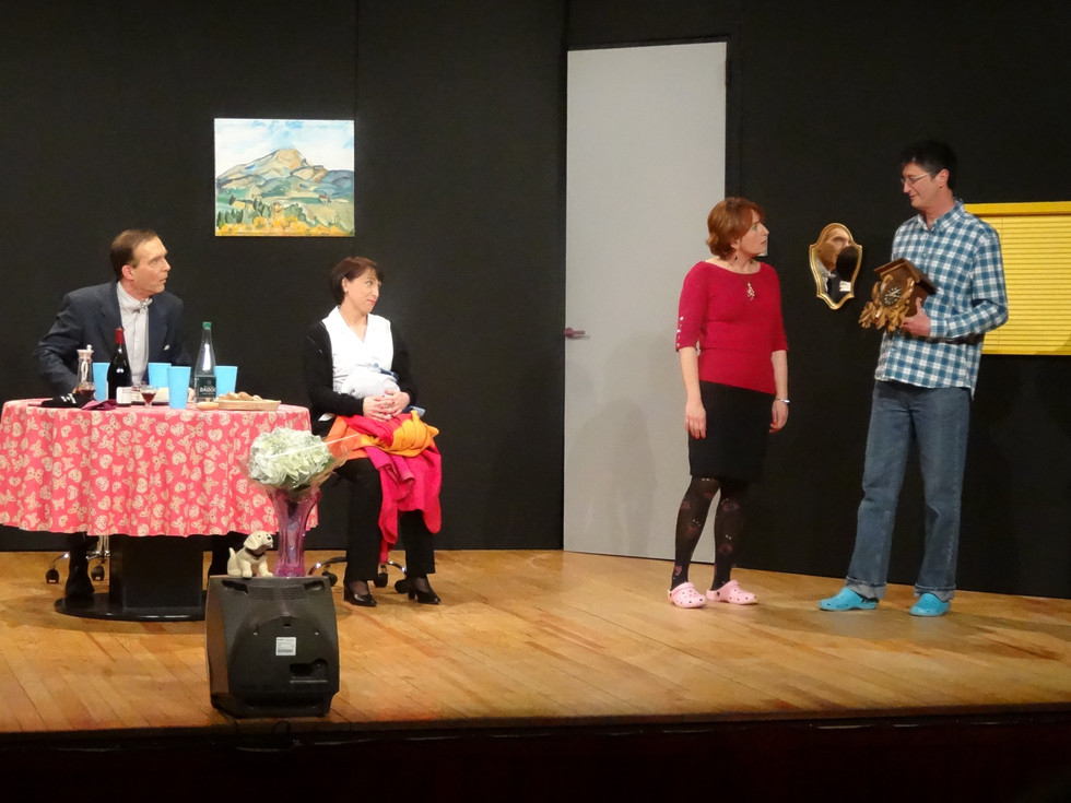 Deux anciens camarades d'université se retrouvent et partagent un diner avec leur compagne respective : l'une enjouée, l'autre renfrognée.